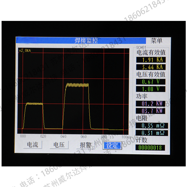 (4)实时检测显示焊接电流,电压,功率,电阻等数据和波形